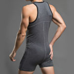 Vintage gentleman’s cut sleeveless Superbody Button Romper. Large buttons that draw the eye down to your pouch with piping detail in short form.